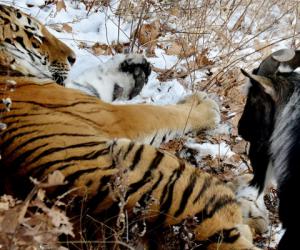 Между закадычными друзьями козлом Тимуром и тигром Амуром произошла серьезная ссора. «Хозяин тайги» не вытерпел наглости копытного и схватил его зубами, потрепал и отбросил в сторону, сообщает ИА «Дейта»...